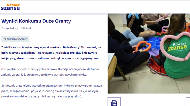 Otrzymaliśmy dotację w OKG Równać Szanse 2023