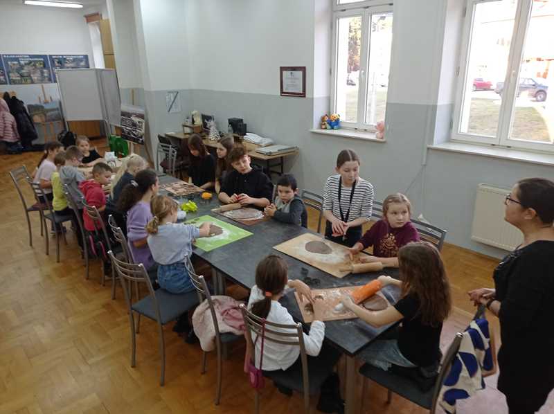 Grupa uczestników projektu "Centrum spełnionych marzeń" zaprosiła do swojej świetlicy najmłodszych uczniów Zespołu Szkolno-Przedszkolnego w Ulanowie. Wspólne pieczenie i dekorowanie pierniczków było dla wszystkich wielką radością.